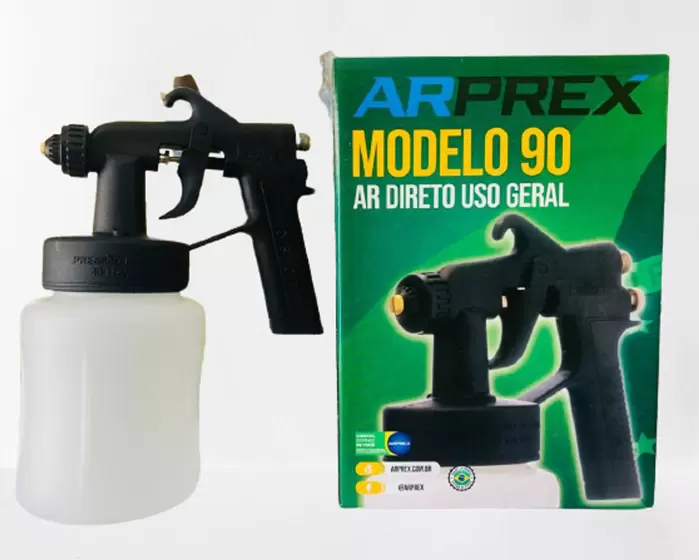 Aplicador de pintura indicada para qualquer tipo de pintura, corpo injetado em nylon com fibra de vidro de grande resistência e caneca tipo rosca de polietileno de alta densidade. Adaptável a compressores portáteis, sem reservatório, o que permite fácil transporte. Fornecida com espalhador de leque e redondo.